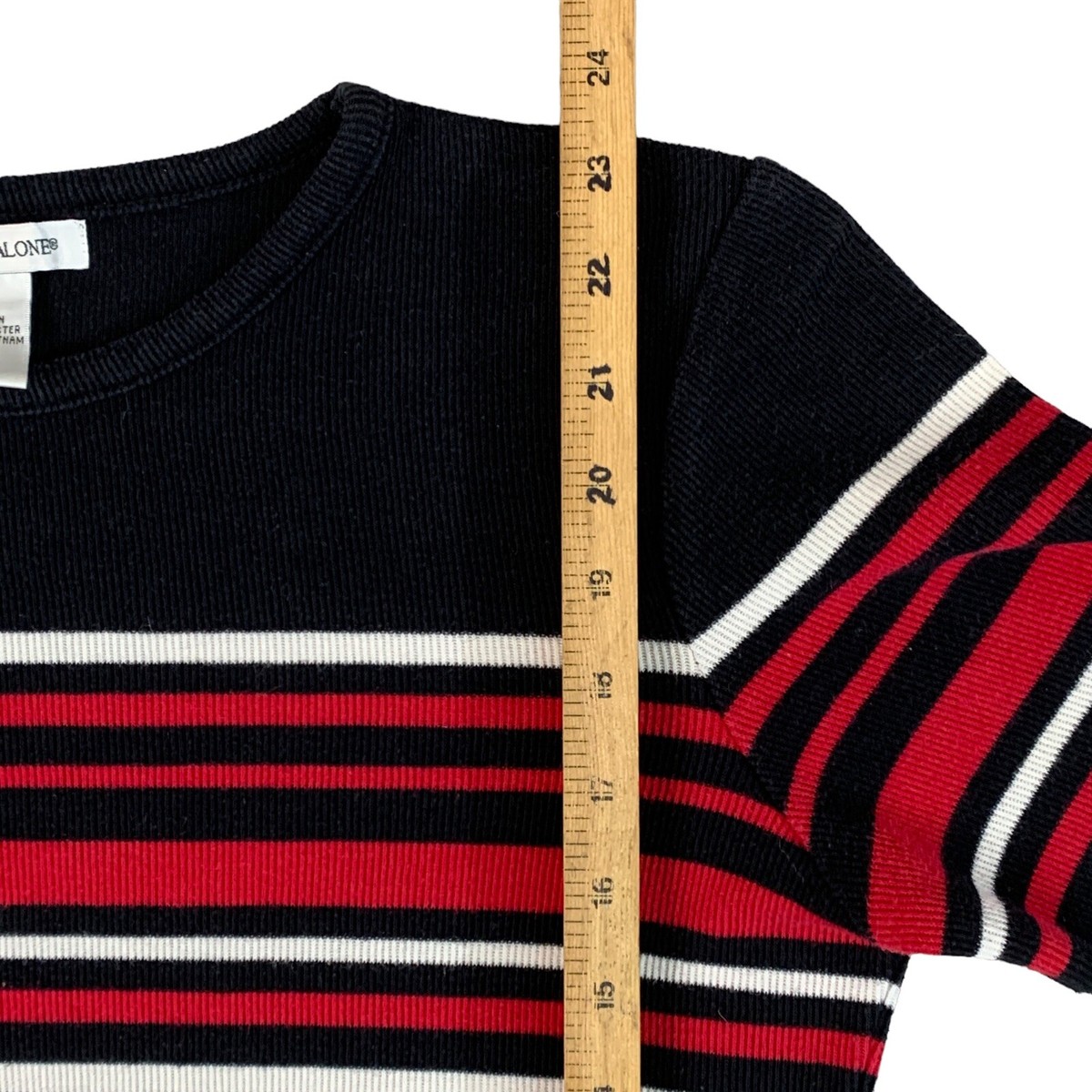 Rebecca Malone Womens Size M Striped Sweater Soft Comfort Black Pink White Top Ebay